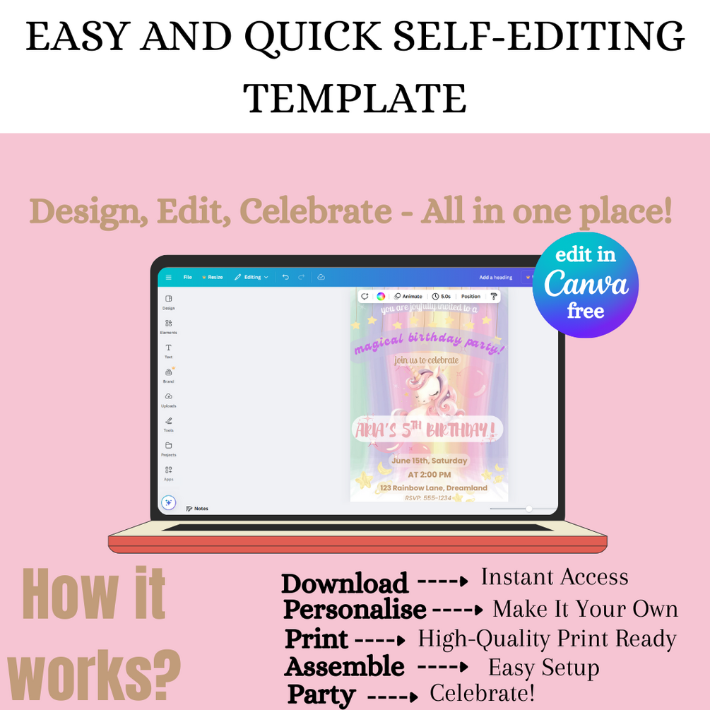 Easy editable birthday invitation, purchase and customize it to your preference! (5x7in)